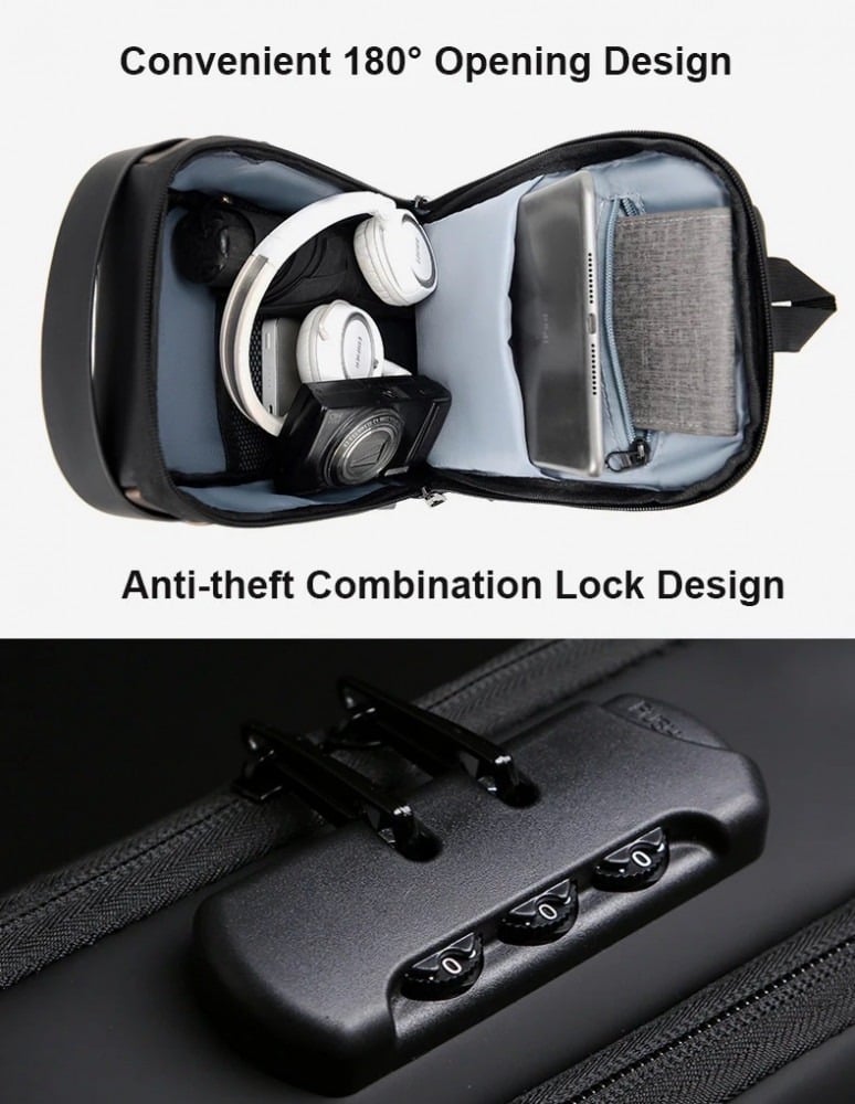 - قفل مضاد للسرقة: سحّابات متينة مزدوجة الوصول مع تصميم قفل مركب مضاد للسرقة يسمح بسهولة الوصول ويزيد من السلامة مما يوفر أيضًا مساحة خاصة لك. جيب خفي ضد السرقة على الظهر لحماية أغراضك القيّمة من اللصوص