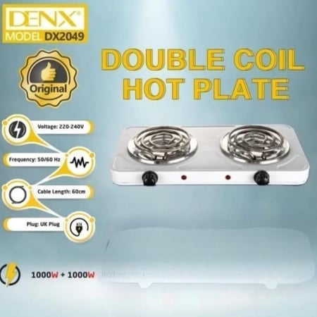 موقد دينيكس الكهربائي حلزوني عينين بقوة 2000وات لون ابيض موديل رقم DX2049W