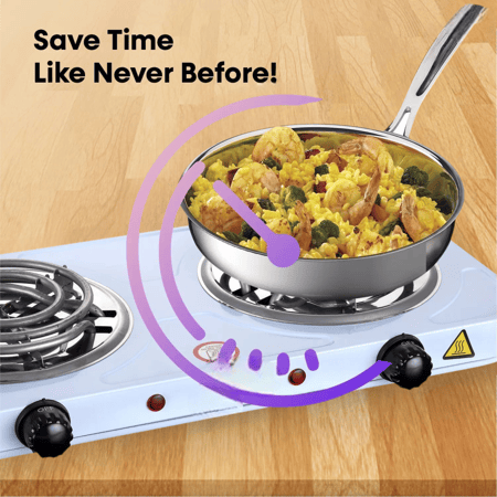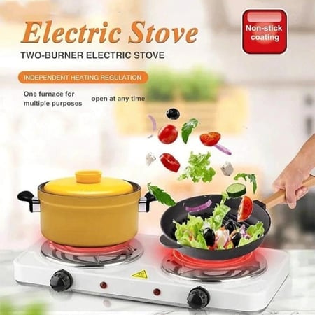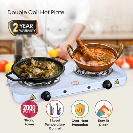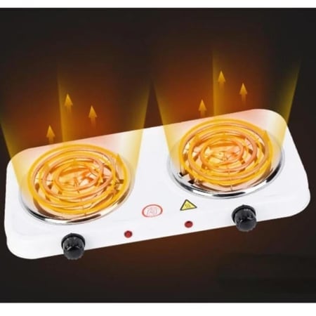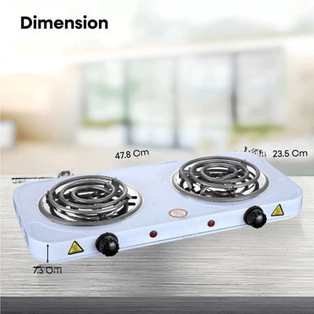 *التصميم : موقد كهربائي حلزوني بعينين مع هيكل حديدي يتميز بمخرج حرارة 2000 واط للطهي الفعال