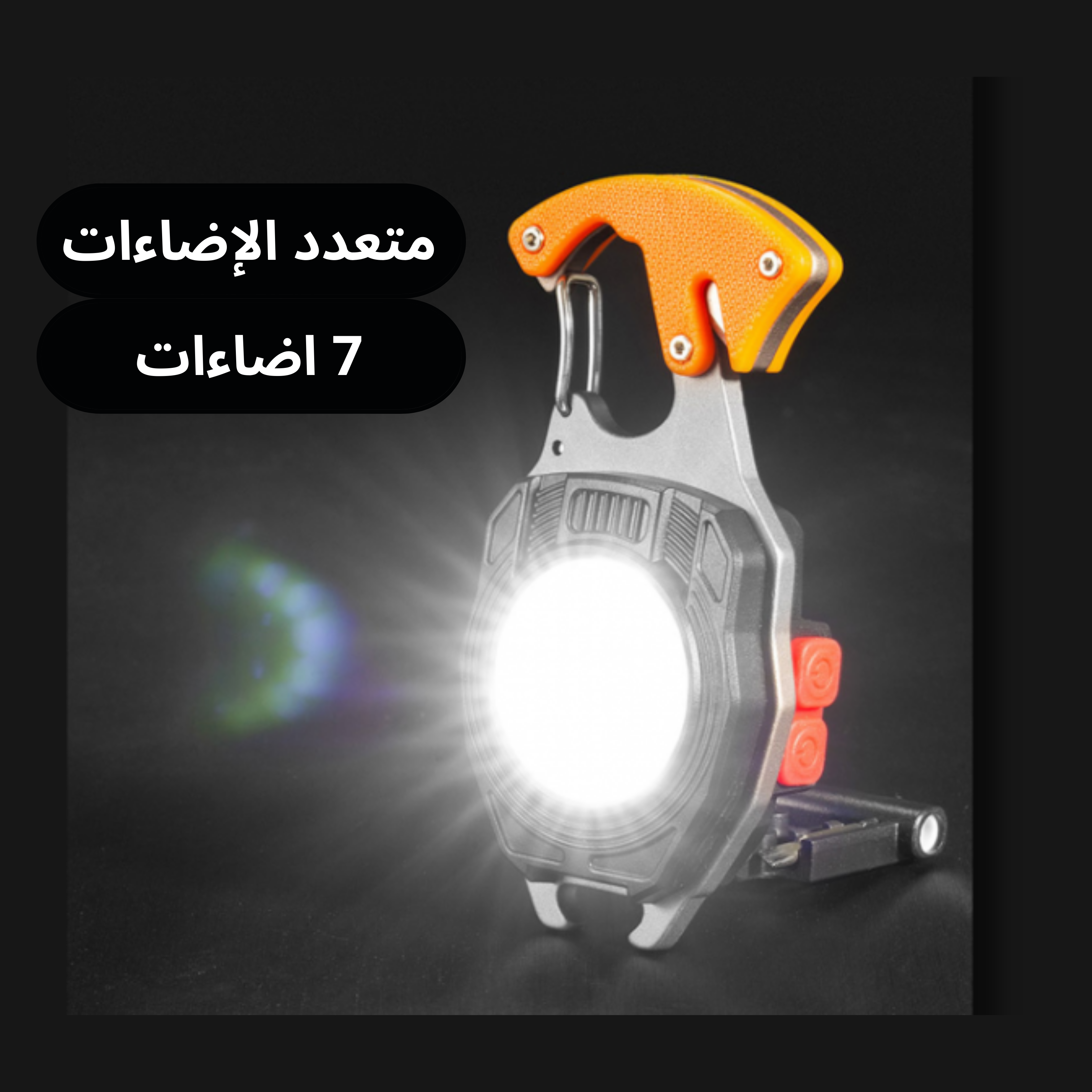 • مميزات المنتج ( قاعدة لتعليق . اداة حادة للقطع . قاعدة مغناطيس 180 درجة . مؤشر للبطارية . ولاعة . مفك براغي . صافرة انذار .