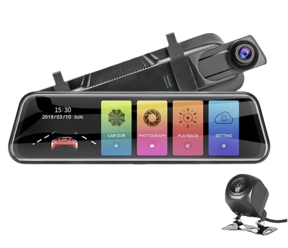كاميرا داش كام مزدوجة العدسة مدمجة في مرآة الرؤية الخلفية.