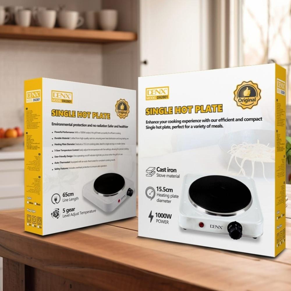 موقد دينيكس الكهربائي حجر عين وحدة بقوة 1000وات لون ابيض